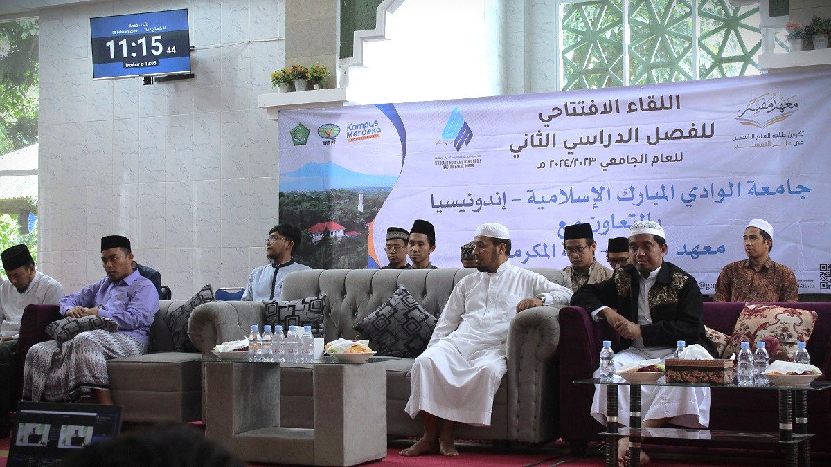 Dalam sambutannya, Mudir STIU Wadi Mubarak Bogor, Ust. Mahfud, M.Ag, mengungkapkan kegembiraannya atas dimulainya semester genap sekaligus dimulainya kerjasama antara STIU-WM dengan Ma’had Mufassir Makkah Mukarromah.