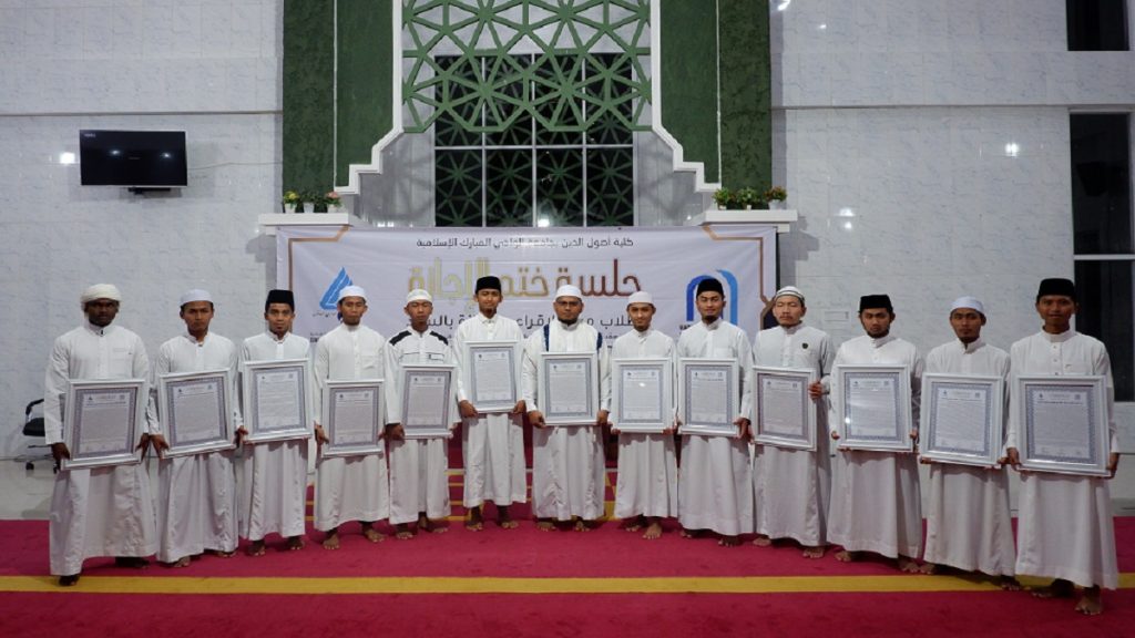 Pada acara penganugerahan sanad kali ini, 14 mahasiswa Sekolah Tinggi Ilmu Ushuluddin (STIU) Wadi Mubarak menerima sanad Al-Qur’an dari para Pengajar (Musyrif) Tahfizh Wadi Mubarak.