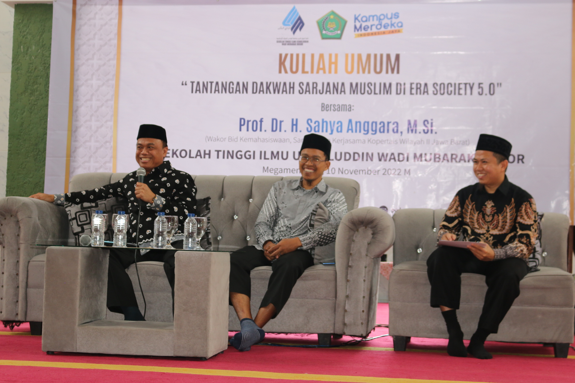Begitulah yang disampaikan Prof. DR. H. Sahya Anggara, M.Si saat berkunjung dan menjadi pembicara dalam Studium Generalle (kuliah umum) di kampus STIU Wadi Mubarak Bogor pada Kamis (10/11/2022) dengan mengangkat tema “Tantangan Dakwah Sarjana Muslim di Era Society 5.0”.