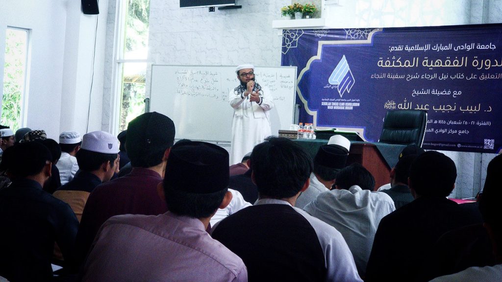 Bertempat di Masjid Jami Wadi Mubarak, Dauroh Fiqh membahas Kitab Nailurraja’ Syarah Safinatunnaja’ digelar oleh Sekolah Tinggi Ilmu Ushuluddin (STIU) Wadi Mubarak. Dibuka pada Sabtu (02/03) dan insyaallah akan berakhir pada Rabu (06/03) yang akan datang