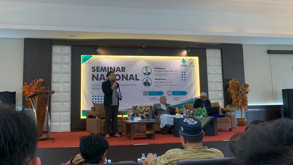 Seminar ini menghadirkan dua orang narsumber yang luar biasa. Narasumber pertama adalah Dr. Hendri Tanjung, MBA., Ph.D., merupakan Komisioner Badan Wakaf Indonesia sekaligus Dosen Prodi Ekonomi Islam di Universitas Ibnu Khaldun Bogor. Beliau menyampaikan materi mengenai solusi menghadapi resesi ekonomi dengan menggunakan pendekatan ekonomi islam.